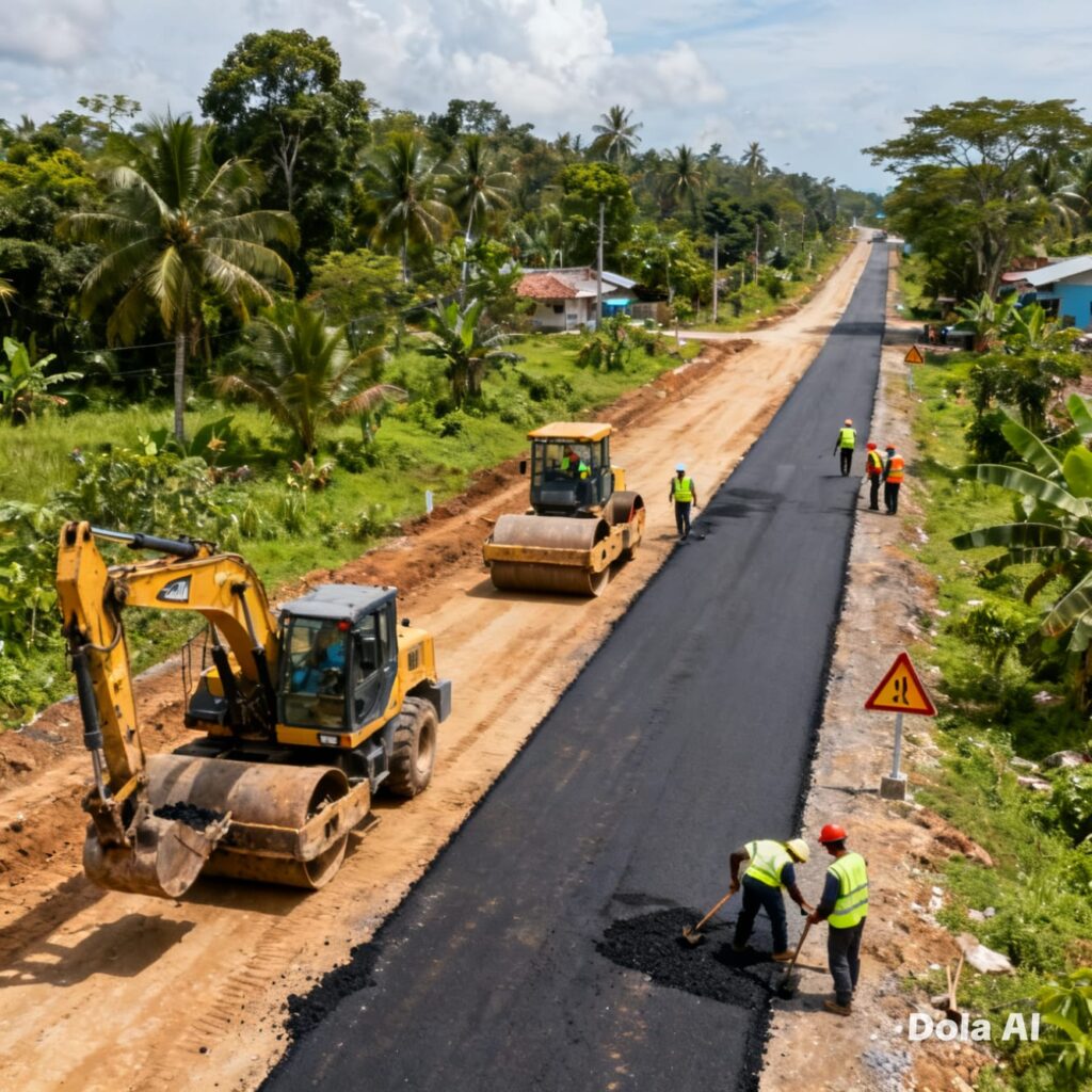 Gambar Ilustrasi Pembangunan Jalan Hotmix Oleh aplikasi Dola